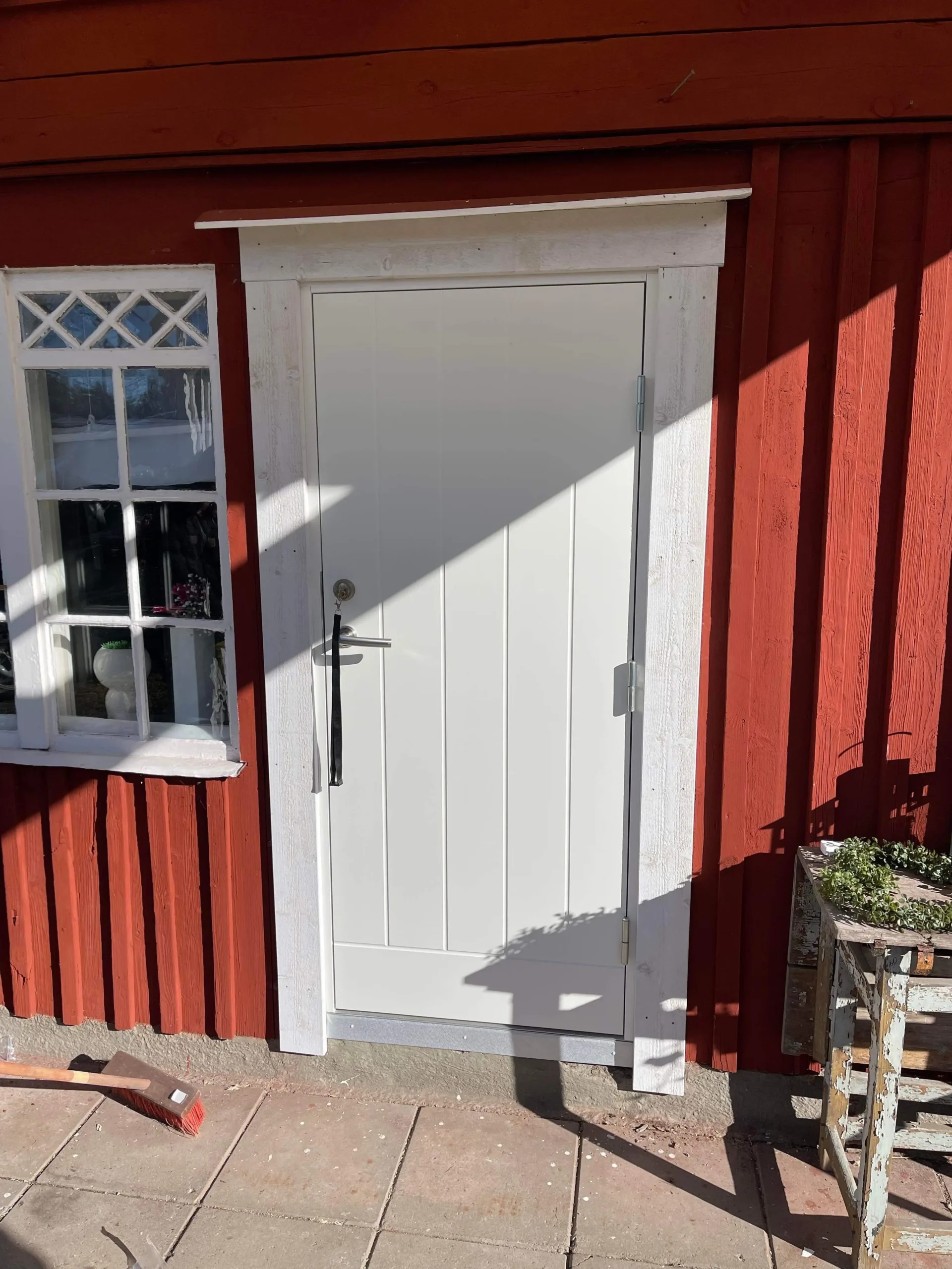 Ytterdörr Emådörren Stranden Tät, en klassisk dörr med frästa spår på utsidan. Se produktbeskrivning och produktblad längre ner.