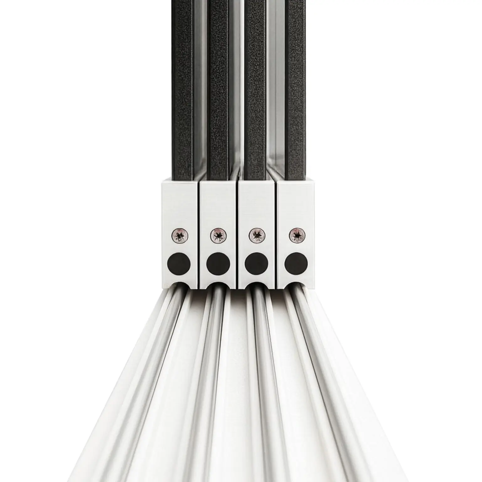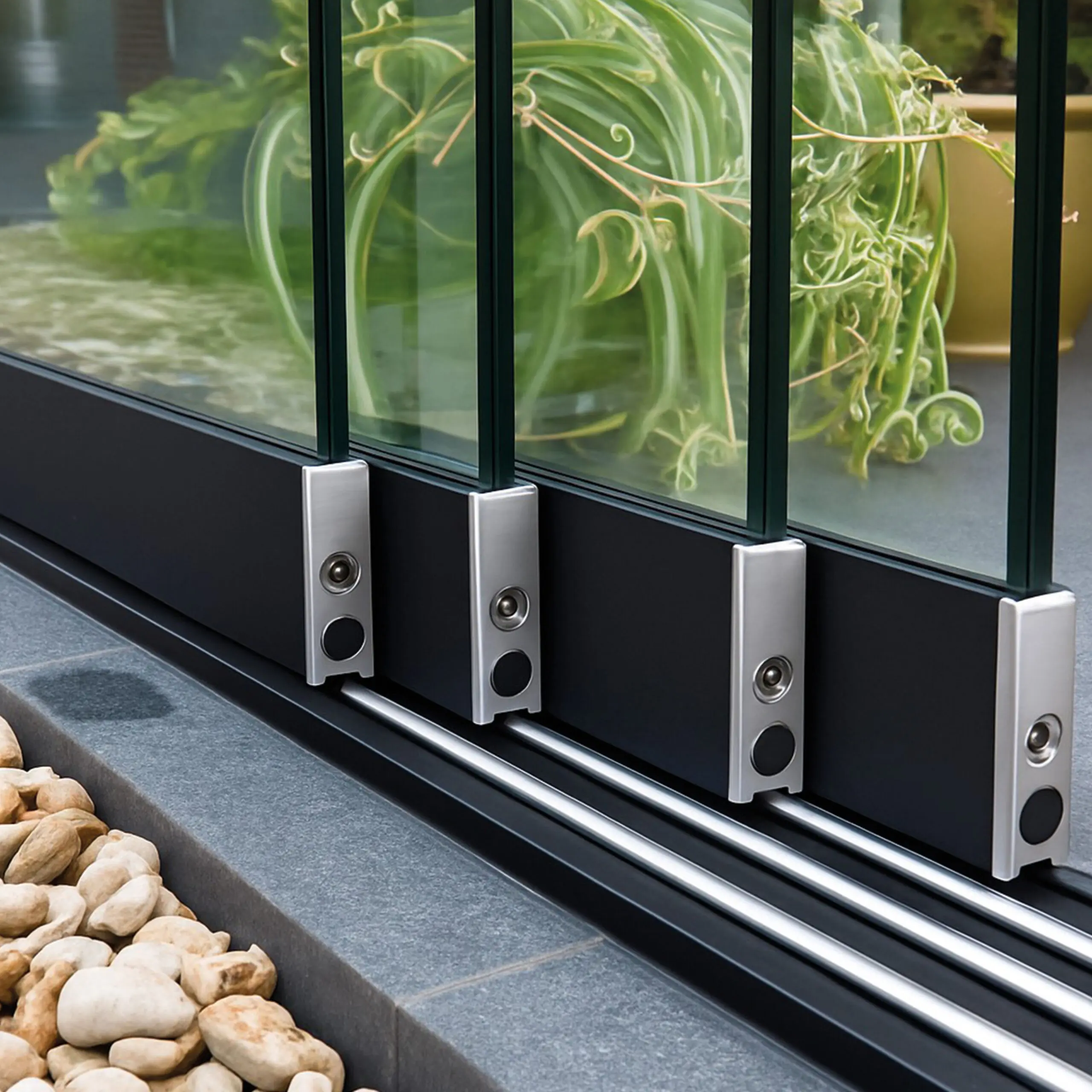 Dörrarna är tillverkade för lång livslängd och daglig användning. Aluminiumprofilerna i topp- och bottenskenor ger stabilitet, medan glaspartierna löper mjukt och smidigt. Ett perfekt komplement till moderna pergolor och aluminiumkonstruktioner. Den rena konstruktionen gör systemet:
